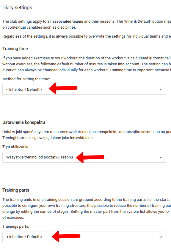Налаштування щоденників безпосередньо впливають на деякі загальні налаштування, які ви, як менеджер, можете встановити як налаштування щоденників за замовчуванням. Звичайно, тренери в багатьох випадках мають вибір, чи хочуть вони успадкувати загальні настройки предмета або встановити певні елементи, як їм зручно.